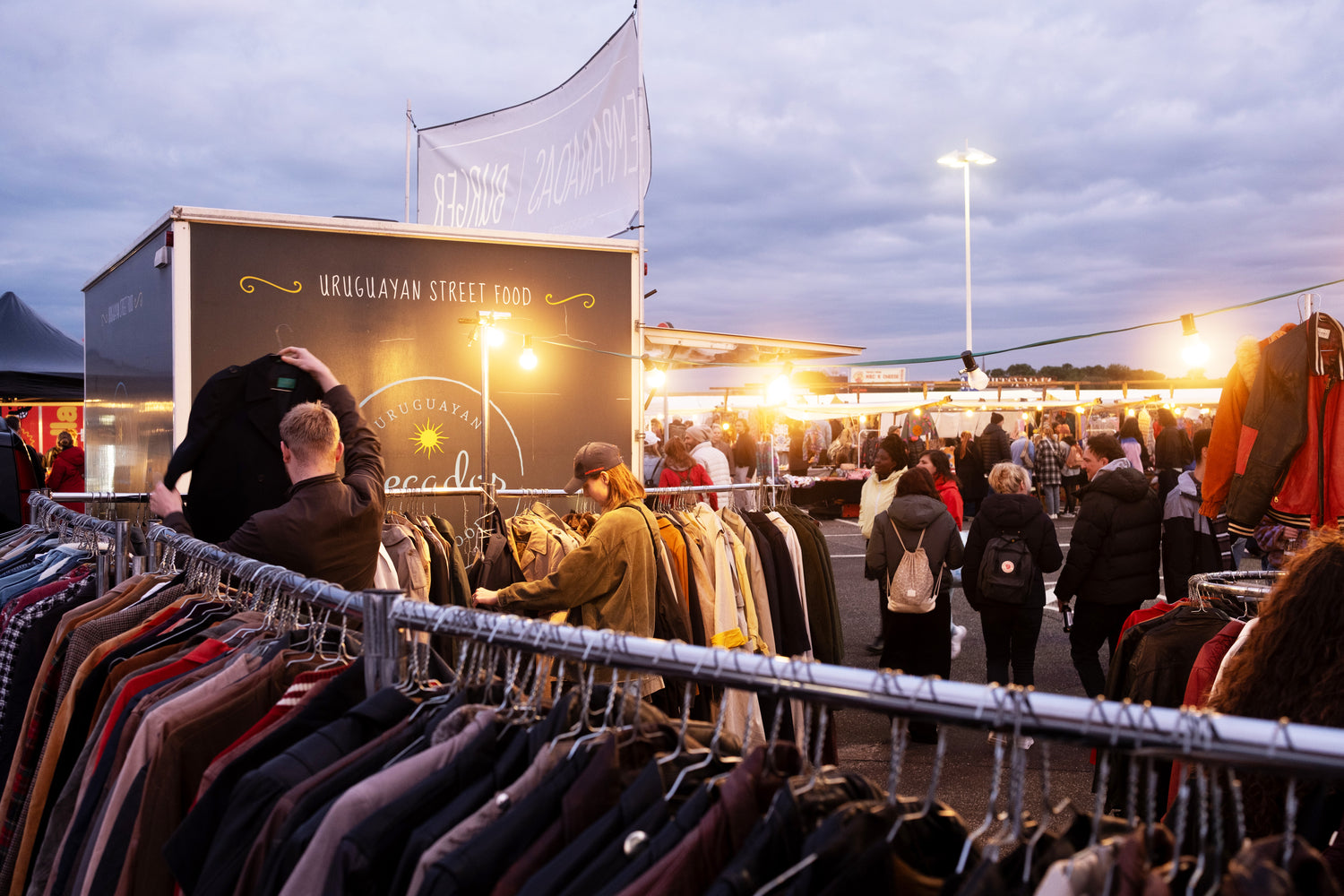 Von April bis Oktober verwandelt sich der große Platz vor der Rindermarkthalle St. Pauli jede Woche in ein Recycling-Mekka unter dem Sternenhimmel mit Food, Drinks und Live-Musik.